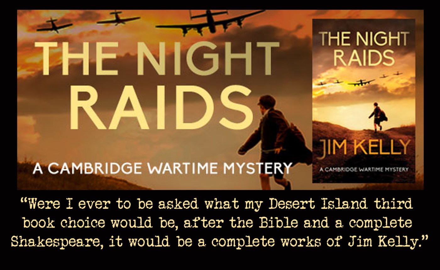 Jim Kelly is one of our finest writers. Were I ever to be asked what my Desert Island third book choice would be, after the Bible and a complete Shakespeare, it would be a complete works of Jim Kelly. In The Night Raids he conjures up a narrative tour de force which combines the Cambridge murders, an exploitative criminal gang and the malevolent intentions of the Luftwaffe – into a dramatic and breathtaking final act. The Night Raids is published by Allison & Busby and is out now.