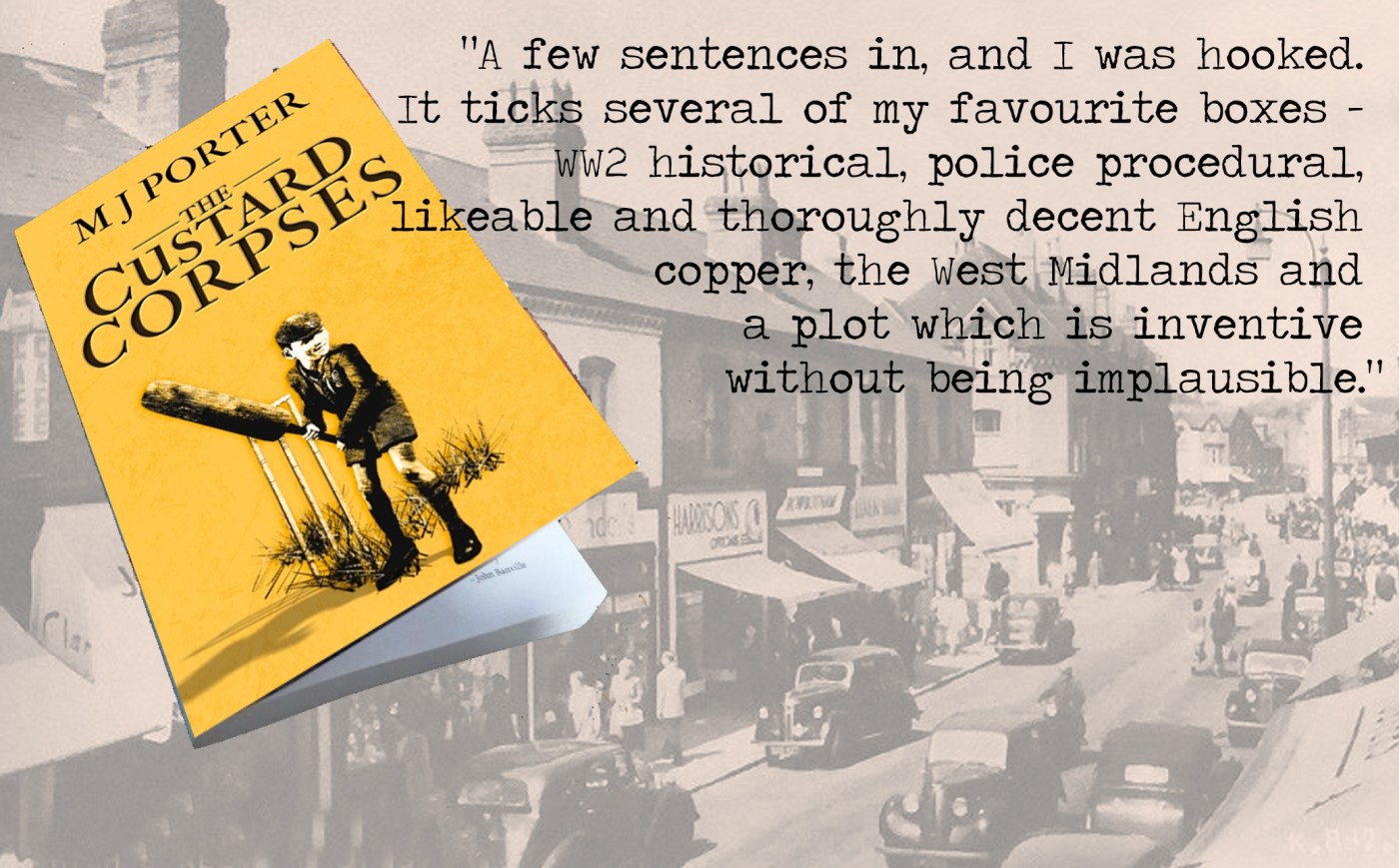 Sometimes a book comes along with very little by way of advanced publicity or hype, and it hits the sweet spot right away. One such is The Custard Corpses by MJ Porter. Strangely-named it might be but the reason for the title becomes more obvious - and appropriate - the more one reads. A few sentences in, and I was hooked. It ticks several of my favourite boxes - WW2 historical, police procedural, likeable and thoroughly decent English copper, the West Midlands and a plot which is inventive without being implausible.