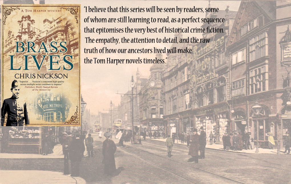 The prolific and ever-reliable Yorkshire author Chris Nickson has been writing his Tom Harper series since 2014 when he introduced the Leeds copper in Gods of Gold. Since then he has stuck to the theme of metal in the book titles, and now we have Brass Lives. Harper is now Deputy Chief Constable of the city where we first met him as a young detective in the 1890s.