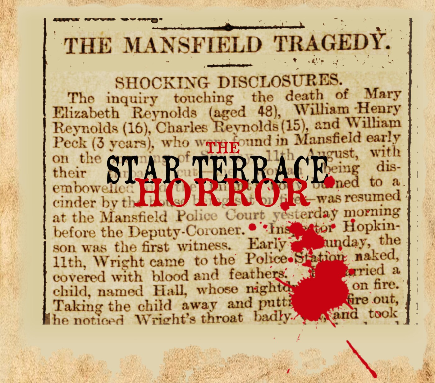 SO FAR: Mansfield, August 1895. Henry Wright, a foundry labourer, has been lodging at 1 Star Terrace, with Mary Elizabeth Reynolds and her step children. In the early hours of Sunday 11th August, Inspector Hopkinson, who lives at Commercial Street Police Station, is woken up by a commotion, and woken up outside his window. He finds Henry Wright, nearly naked, holding a small boy in a burning nightdress. Both Wright and the boy are covered in blood. Hopkinson leaves the pair with his wife and hurries to Wright’s lodging, just fifty yards down the street. The upstairs of the house is on fire, and George Reynolds is at his bedroom window shouting for help, but the fire brigade soon arrive, rescue George with a ladder, and then force an entry to the house.