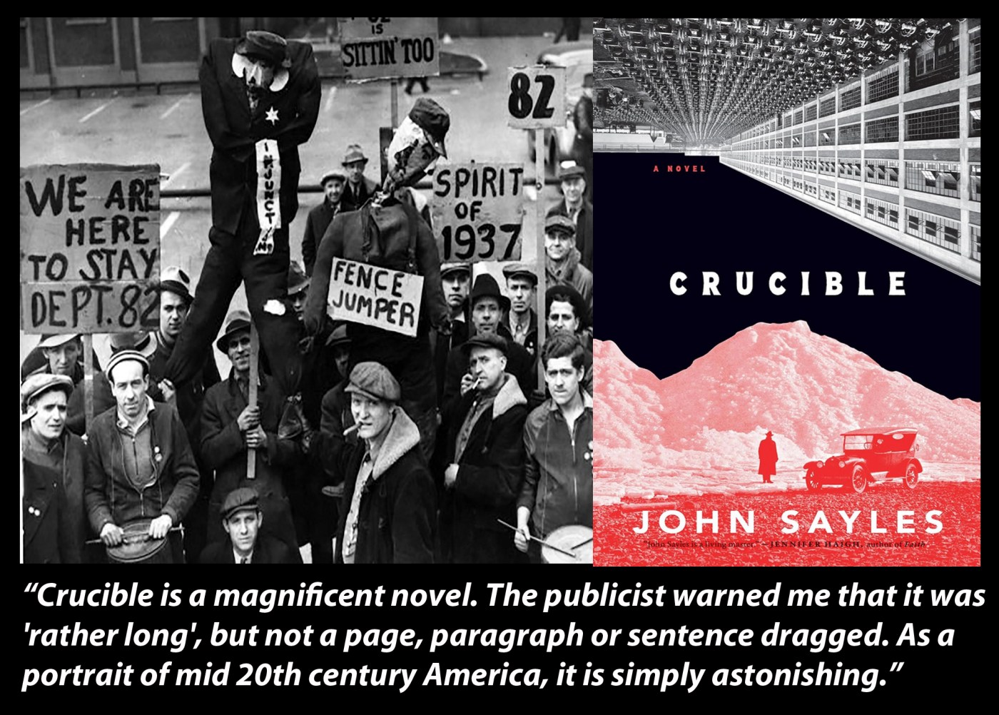 Crucible is a reminder that, amidst all the formulaic production line American fiction that sells by the million on supermarket shelves, there are still good writers out there.’sprawling’and ‘epic’ were adjectives once used to describe novels or films with huge breadth and compass. In this sense, Crucible certainly ‘sprawls, but along the way Sayles pens a kind of love letter to the racial and cultural blend of ordinary people who were striving to become Americans by taking Henry Ford’s dollar, the Sicilians, the dirt-poor Blacks forced to emigrate north, the ex-European Jews, the resilient Poles, the flint-hard Scots and their Irish cousins. In his afterword, however Sayles eschews sentimentality, particularly in view of the savage Detroit race riots of 1943: