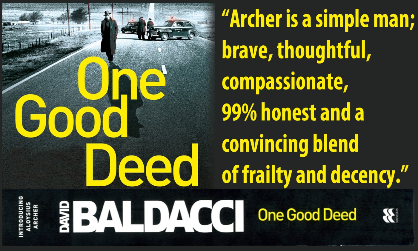 mplausible as it may sound, given the body count – stabbings, shootings, people devoured by hogs – One Good Deed is a wonderfully warm and feel-good kind of novel. Archer is a simple man; brave, thoughtful, compassionate, 99% honest and a convincing blend of frailty and decency. Baldacci (right) is such a skilled storyteller that the pages spin by, and anyone who loves a crime novel where goodness prevails would be mad to miss this. Mr B also gives us a rather unusual romance – for 1949, at least. One Good Deed is published by Macmillan and is
