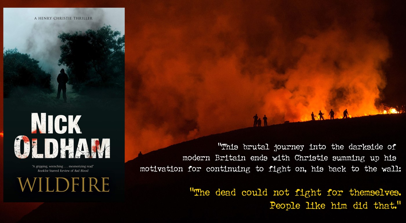 Oldham’s Henry Christie was a particular favourite, as his adventures mixed excellent police procedure – thanks to Oldham’s career as a copper – a vulnerable and likeable hero, and an unflinching look at the mean and vicious streets of the Blackpool area in England’s north-west. Wildfire is the latest outing for Henry Christie, who has retired from the police and now runs a pleasant village pub set in the Lancashire hills.