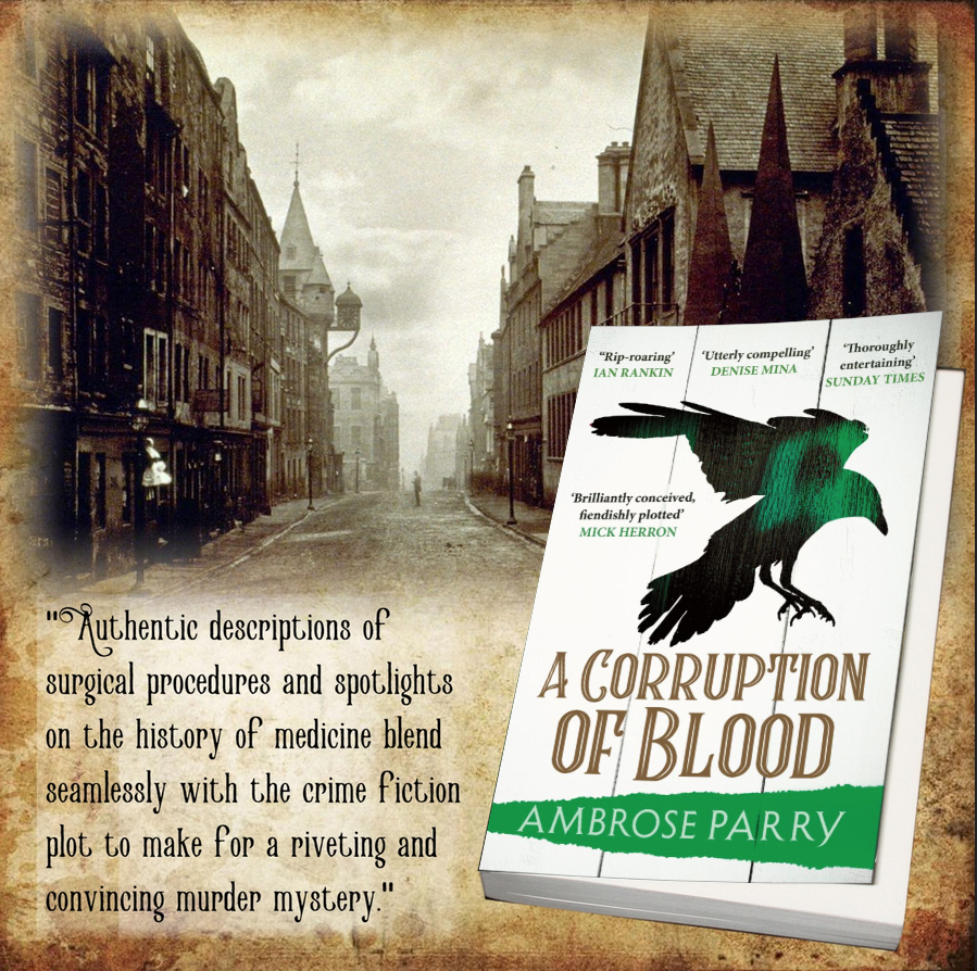 Edinburgh physician Dr Will Raven returns for the fourth in the series set in Edinburgh in the middle years of the nineteenth century. Ambrose Parry is the husband and wife writing team of Chris Brookmyre and Dr Marisa Haetzman. For new readers, a brief ‘heads-up’ about the personal dynamics between the main characters might be useful. Raven is assistant to – and disciple of – Professor James Young Simpson, pioneer anaesthetist and the only real life character in the book. Sarah Fisher was once Simpson’s housekeeper and, briefly, Raven’s lover, but he has since married, as did she, but her husband is now dead. She has a burning ambition to become a doctor.